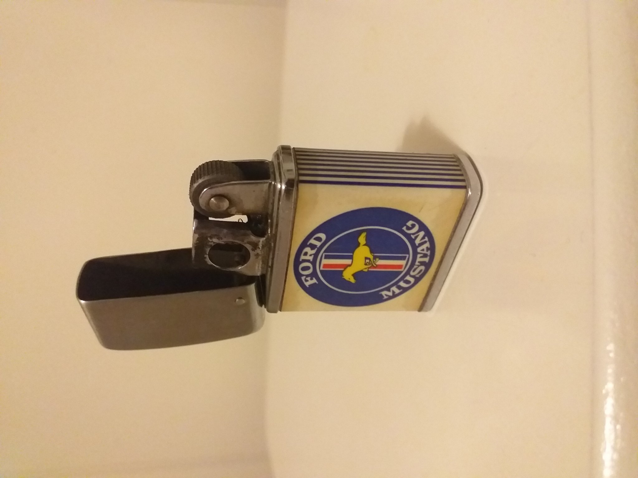 Sain ostettua vanhan Ford Mustang -logolla varustetun sytkärin. Sytkäri on valmistettu Japanissa tunnuksilla "Kennedy, Japan". Jos sytkärin ikää osaisin arvioida ulkonäön perusteella, sanoisin että se on valmistettu joskus 70-luvun tienoilla.