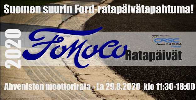 Kerhollemme jo perinteeksi yli 20 auton voimin muodostunut, Suomen suurin Ford-ratapäivätapahtuma, FoMoCo-päivä, järjestetään perinteiseen tapaan Ahveniston moottoriradalla Hämeenlinnassa La 29.8.2020 klo 11.30 alkaen. Tiedossa rata-ajoa, sprintti-kisa, rajoitetun nopeuden ajo sekä hienoimman Fordin yleisöäänestys.