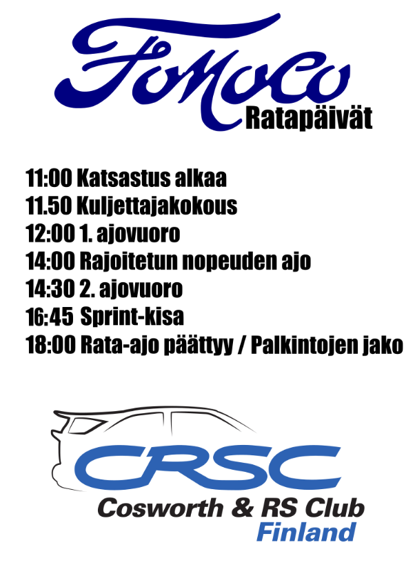 Radelle ovat tervetulleita kaikki FoMoCo-konsernin autot. Paikan päälle voit saapua muunkin merkkisellä autolla. Päivä on ns. melupäivä eli meluraja rata-ajossa on 110dB.