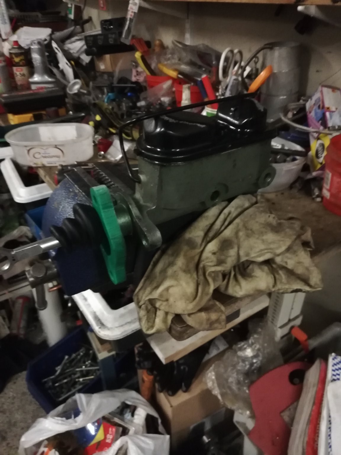 , vittu. Takimmainen säiliö ei lähde pelittämään vaikka on imetty ja paineltu, on nyt ruuvipenkissä kiinni. Tää oli vanha pääsylinteri, en muista mistä tää on mulle kulkeutunut. Ollu varmaan rikki jo mulle tullessa joskus. No onko jollain ehjää foxin pääsylinteriä?