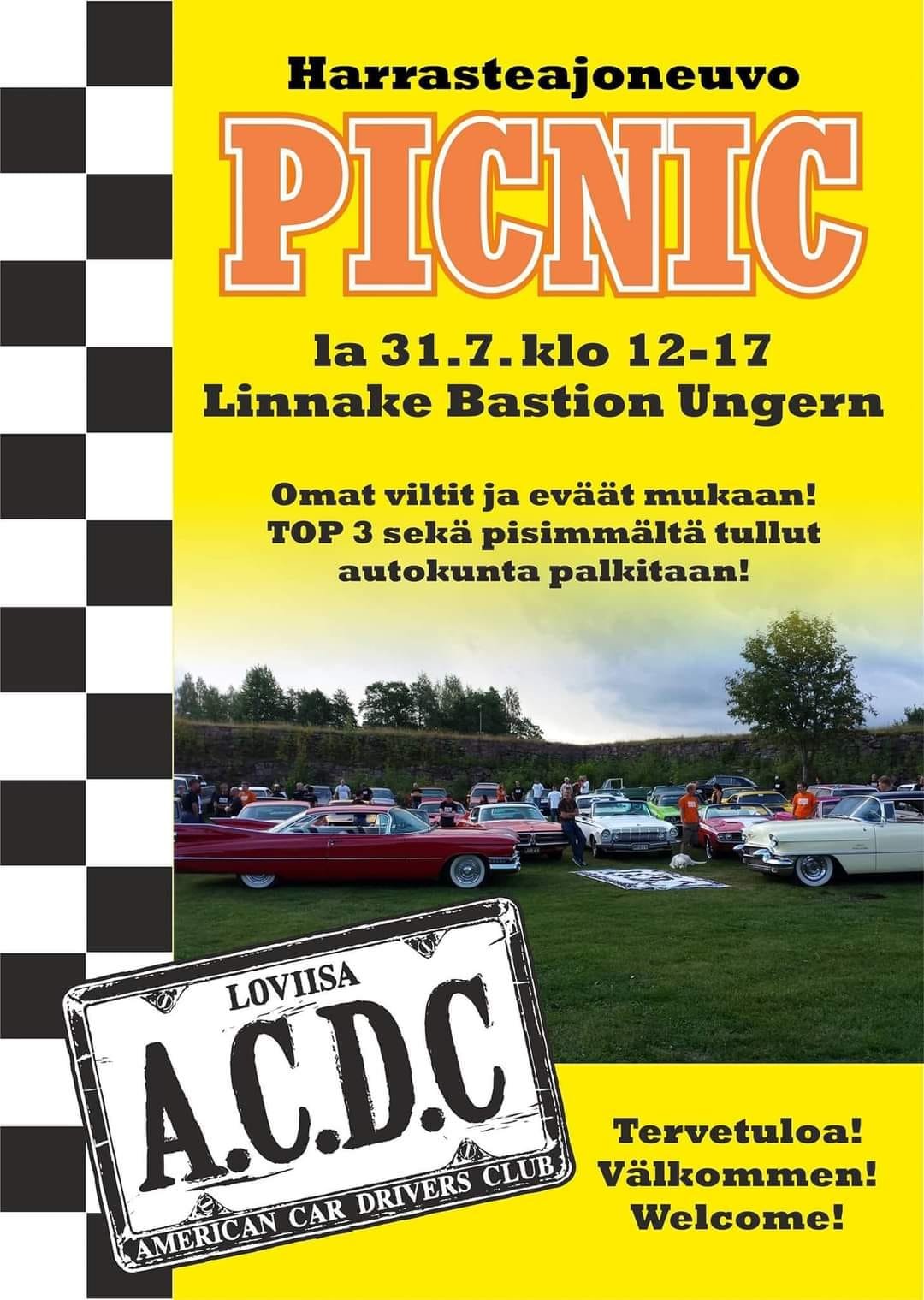 Picnicin jälkeen, jos vanhat merkit pitävät paikkansa, siirtyy porukka letkassa Neste Ankkurituulen parkkipaikalle patsastelemaan. Järjestävänä tahona on American Car Drivers Club Loviisa R.y..