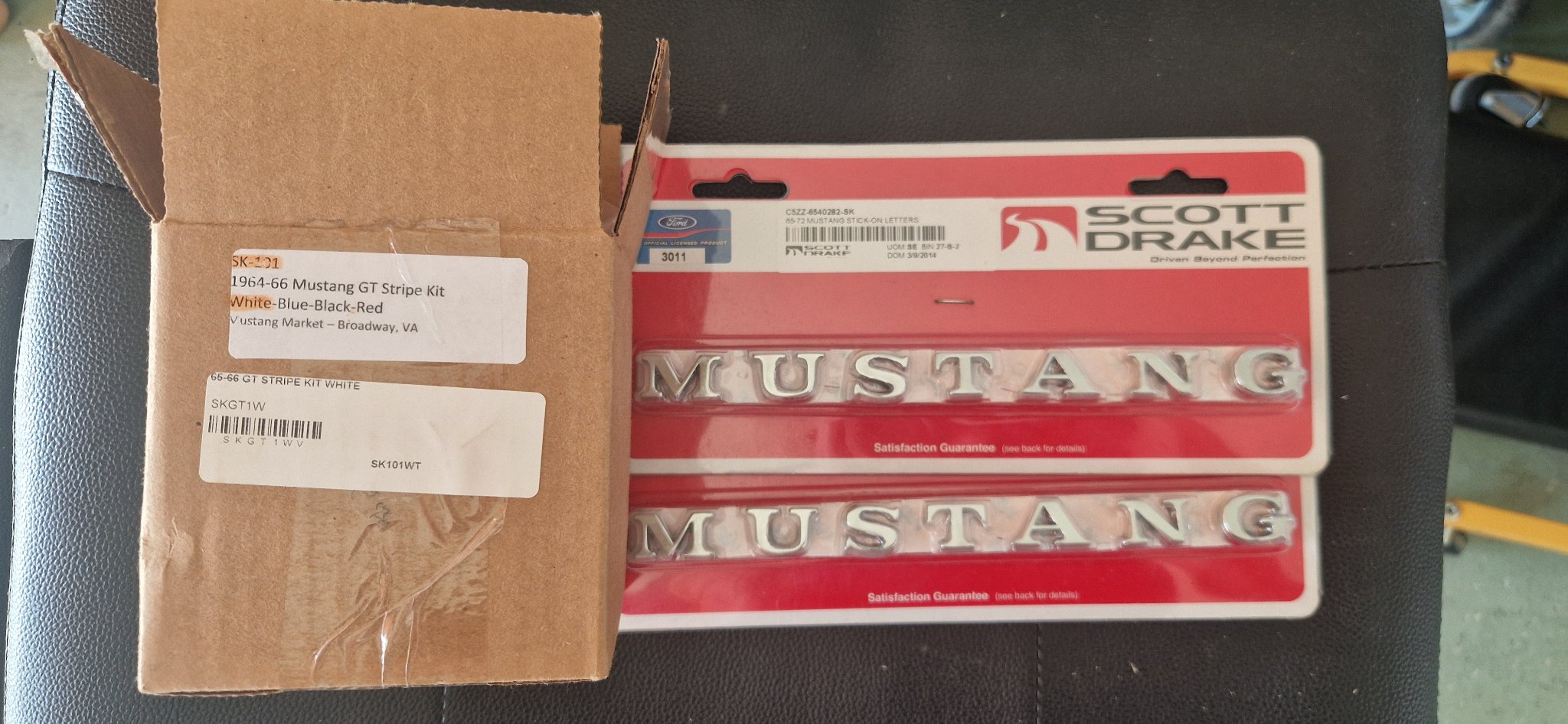 GT valkoiset raidat alahelmaan ja Mustang kirjaimet tarralla, h. 100 euroa koko paketti