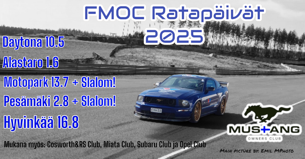 Ratapäivä toteutetaan yhteisratapäivänä yhdessä kerhojen: Cosworth &RS Club, Miata Club, Mitsubishi Club sekä Opel Club kanssa. Näin saamme laajan kattauksen ratoja kesän ajalle ajettavaksi. Radoilla on tähän asti ollut aina hyvin tilaa ajaa mihin tahansa aikaan ja yhteishenki on hyvä.